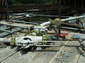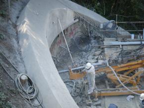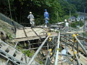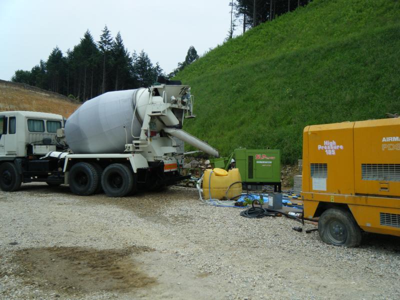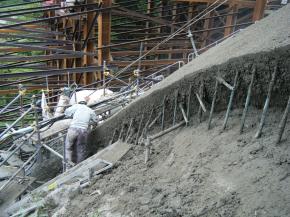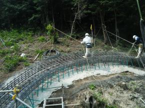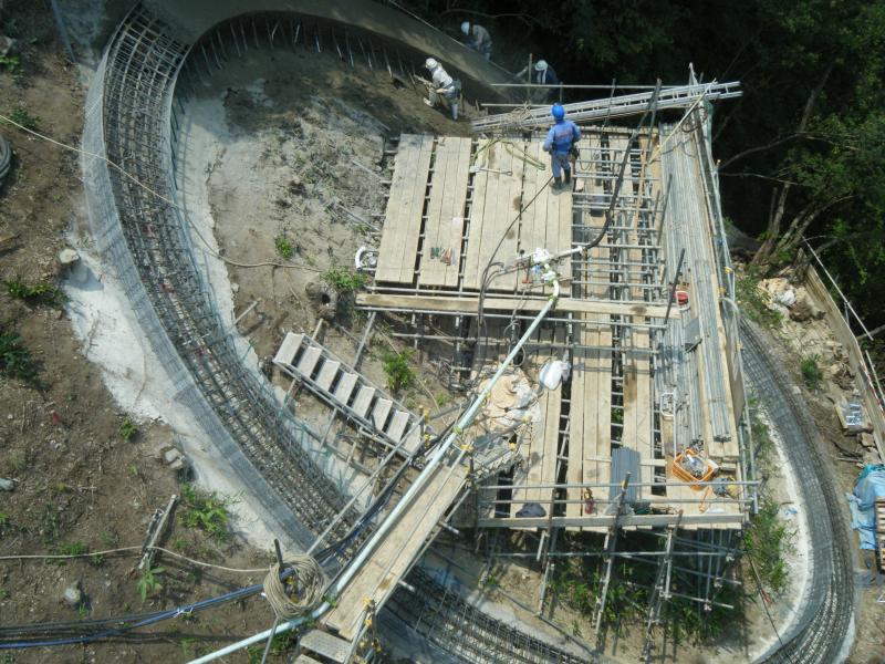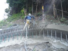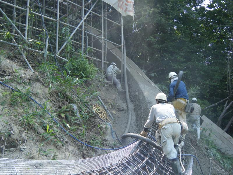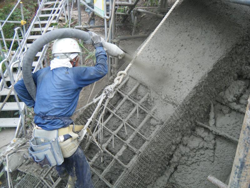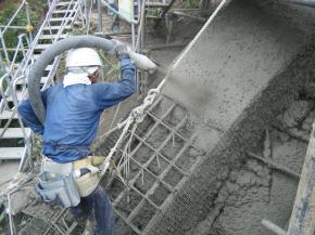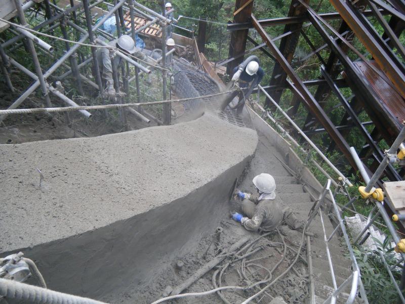 橋脚基礎工事~小型軽量定置式コンクリートポンプで吹付け